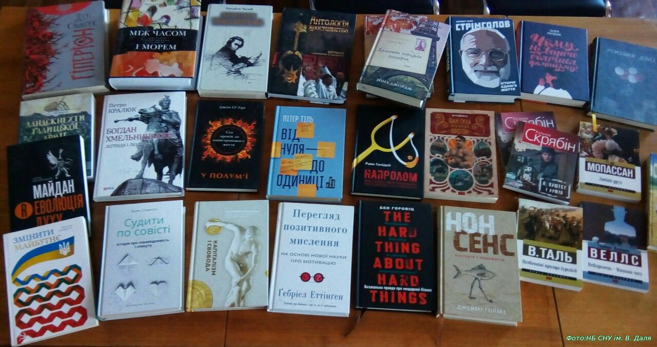 Бібліотека отримала в дар від Благодійної організації «Благодійний фонд «Бібліотечна країна» у рамках проекту «Підтримка бібліотек переміщених університетів Сходу та Криму» 28 нових, цікавих, красивих видань (Див фото). Щиро дякуємо Жива сучасна бібліотека – БФ Бібліотечна країна та його виконавчому директору Люсьєні Шум за підтримку нашої бібліотеки.  А користувачів запрошуємо до перегляду. Post Views: 29