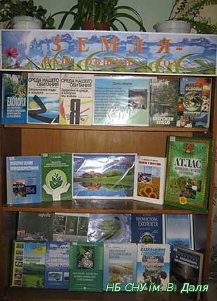 Увазі користувачів наукова бібліотека СНУ ім. В. Даля пропонує книжкову виставку «Земля – наш спільний дім». На ній представлена література за однією з найактуальніших проблем сучасності – забруднення та погіршення стану навколишнього середовища та охорони природи, безпеки життєдіяльності в природному середовищі і раціонального природокористування, а також озеленення наших міст і ландшафтної архітектури. ![]() ![]() |