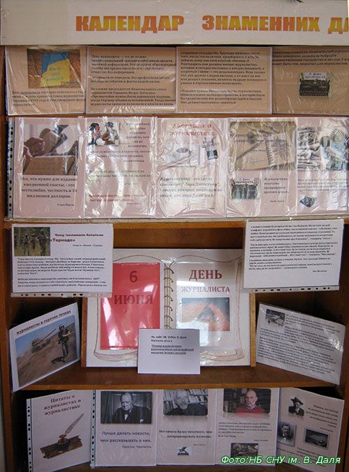 ![]() Этот праздник можно назвать общенародным праздником, потому что наше время – это время информационного бума, когда у нас есть неограниченный доступ к любым источникам её получения. Но без профессионального взгляда на многие вещи мы вряд ли в одиночку разобрались с ситуацией. Ведь главное даже не получить информацию, а сделать на основе увиденного и услышанного правильные выводы, вынести суть – а это журналисты делают лучше всех нас. Кроме таланта от бога они ещё хорошо обучены своему делу! При всей очевидной пользе от той работы, которую выполняют «мастера пера», далеко не всем нравится та правда, которую журналисты «вытаскивают на свет», поэтому профессия журналиста считается одной из самых опасных – платой за свою профессиональную деятельность бывает их здоровье и даже жизнь. Но это не останавливает, а только стимулирует их в дальнейшей работе. Ведь быть журналистом это не просто профессия – это призвание. Известно, что первой жертвой войны становится правда. Журналисты во время конфликтов политикам и военным только мешают. Они пристают с ненужными вопросами, путаются под ногами и лезут на рожон. Журналистика – древнейшая из профессий, потому что желание узнавать мир, жажда новостей и обмена информацией были присущи человечеству испокон веков. Мы организовали выставку к Дню журналиста – мастеров пера, гениям разоблачений, вестникам главных новостей и сенсаций, защитникам прав человека и сторонникам правды, чтобы показать их роль в современном обществе, так как они формируют наше мировоззрение и помогают разобраться с огромным потокам информации. От них зависит – каким будет наше государство завтра. Приглашаем преподавателей и студентов посетить нашу выставку! |