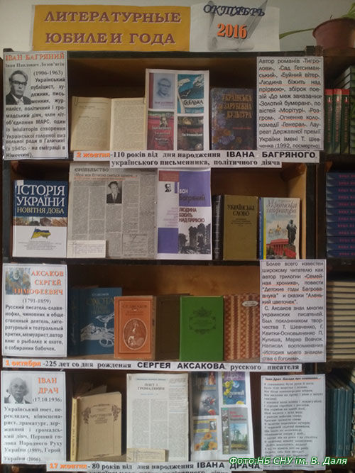 В отделе художественной литературы оформлена очередная книжная выставка из цикла «Литературные юбилеи 2016 года». Она посвящена литературным датам, которые отмечались в октябре ![]() ![]() |