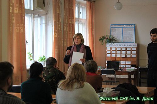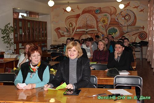11 грудня 2015 року в межах заходів тижня права на базі юридичного факультету та Наукової бібліотеки СНУ ім.В.Даля відбувся круглий стіл “Аспекти розвитку законодавства щодо захисту прав та свобод людини в світлі євроінтеграційних процесів”. Організаторами заходу є юридичний факультет Східноукраїнського національного університету імені Володимира Даля, Наукова бібліотека, ГО Восток-SOS. Відбулося обговорення питань : Європейське законодавство щодо захисту прав та свобод людини. Загальна декларація прав людини, Конвенція про захист прав людини і основоположних свобод, їх роль у становленні сучасної системи європейських цінностей. Забезпечення прав і свобод внутрішньо переміщених осіб : важливий напрямок розвитку правотворчості в світлі євроінтеграційних процесів. Включення питань євроінтеграційної тематики до системи юридичної клінічної освіти – важлива ланка в площині накопичення знань про ЄС. Правова допомога онлайн (ресурс Наукової бібліотеки). | |