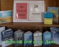 Конституція України – це документ, що закладає підґрунтя організації і діяльності держави та формування у ній громадянського суспільства. Конституція – це своєрідний суспільний договір, у якому народ визначає основні напрямки свого подальшого розвитку та існування, гарантії прав та свобод громадян у суспільстві. Зі святом вас, дорогі друзі! З Днем Конституції України!   В науковій бібліотеці організована виставка документів, присвячених Дню Конституції України, в яких відображені найважливіші ш